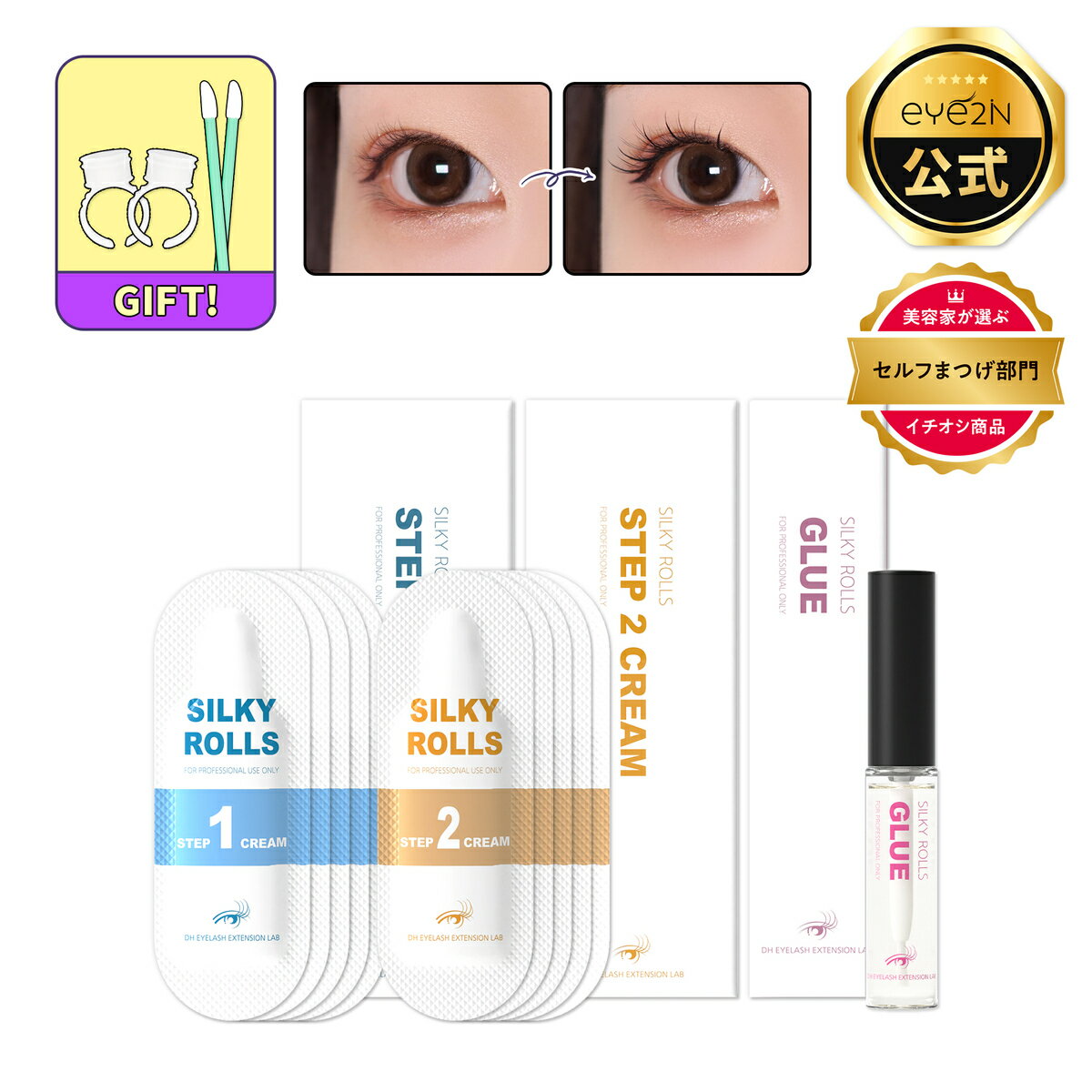 [EYE2IN公式]SILKY ROLLS セルフ まつ毛 2種カールセット10回分 アイメイク セルフプロ用美容液 エッセンス ラッシュリフト マツパ 韓国化粧品 韓国コスメ まつ毛美容液 マツエク まつげパーマ マツパ(シルキーロールズ)(送料無料) ショップ:EYE2IN