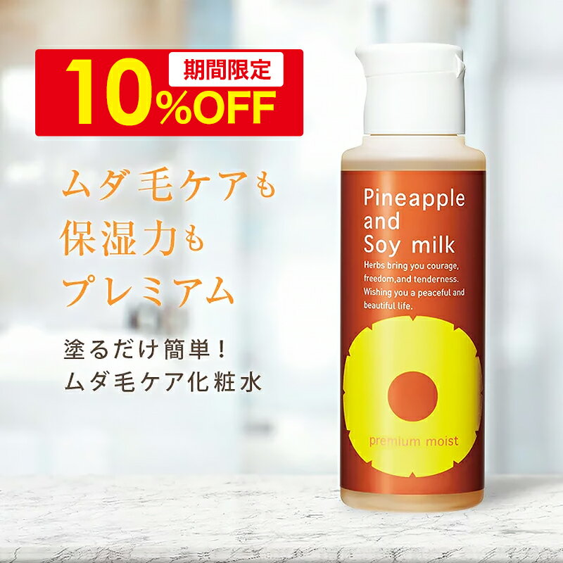 \4/16 1:59迄!10%OFFクーポン配布中!/パイナップル豆乳ローションプレミアムモイスト ムダ毛 対策 VIO デリケートゾーン 背中 顔 うぶ毛 産毛 メンズ 髭 子供 子ども 女性 敏感肌 乾燥肌 でも安心 抑毛 抑毛ローション カミソリ シェーバー での ムダ毛処理 ショップ:鈴木ハーブ研究所